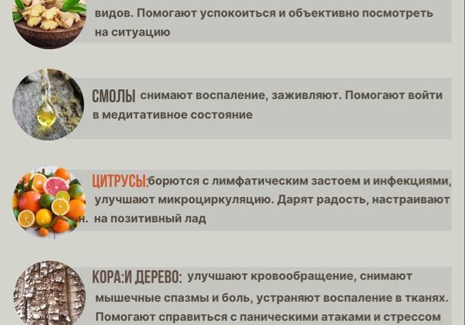Некоторые эфирные масла обладают противовоспалительными, антимикробными и противовирусными свойствами, которые могут помочь поддержать здоровье организма. Например, эфирное масло эвкалипта может помочь при простуде и гриппе, а масло лимона может укрепить иммунитет и помочь справиться с усталостью.